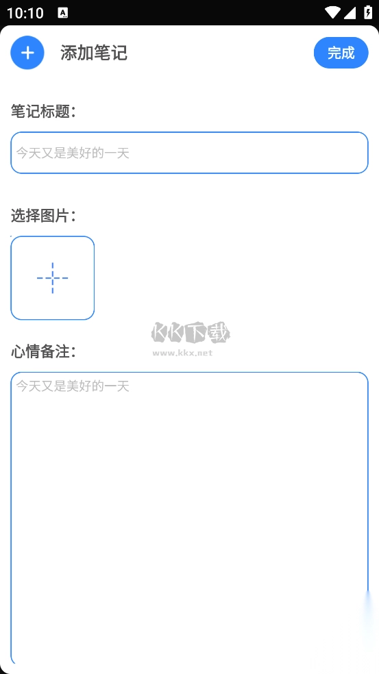 2、这里提供了添加心情、笔记以及账单三个选项,点击添加笔记