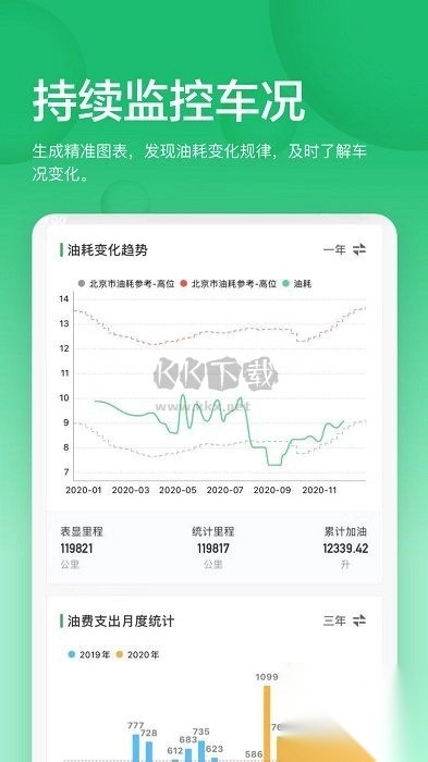 生成精准图表,发现油耗变化规律,及时了解车况变化