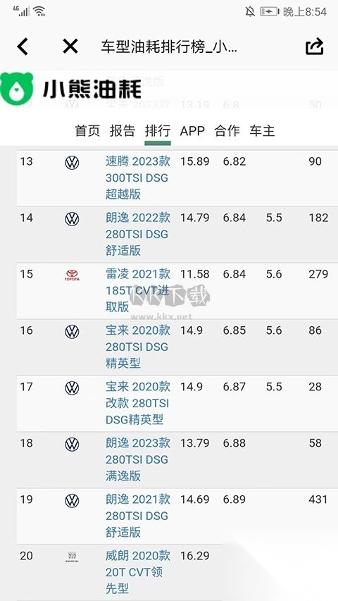 4、根据真实数据统计,客观反映车辆油耗排行;