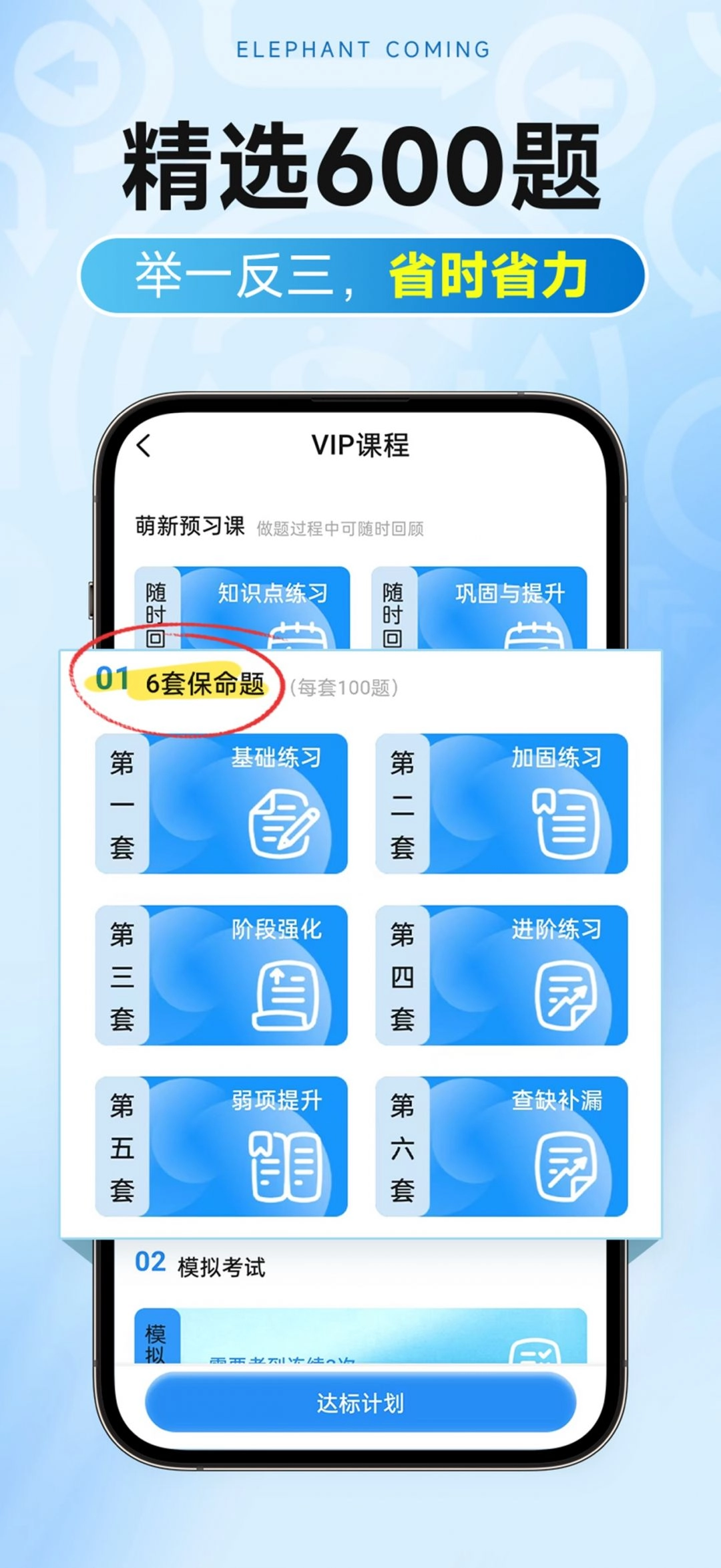 3、VIP精简题库:依据考点精心挑选重点题目,结合答题技巧,通过举一反三的方式夯实基础。考前密卷专为考前冲刺提分设计,会员享有专属福利,若考不过,最高可获160元补偿!