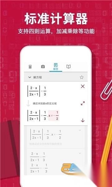 PhotoMath是一款针对大学生设计的高等数学拍照解题利器软件,涵盖四则运算、分数、小数、线性方程式以及对数等多种函数类型。使用时,只需打开PhotoMath,将手机摄像头对准桌面的数学题目进行扫描识别,它便会即刻在手机屏幕上呈现出每一步的计算过程与计算结果,助力你轻松攻克数学难题。