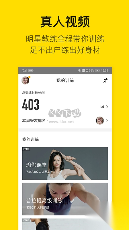 1. 由真人教练亲自录制视频,全程引领你完成训练,仿佛与你一同挥洒汗水。训练过程中,你还能随时对训练难度做出评价。