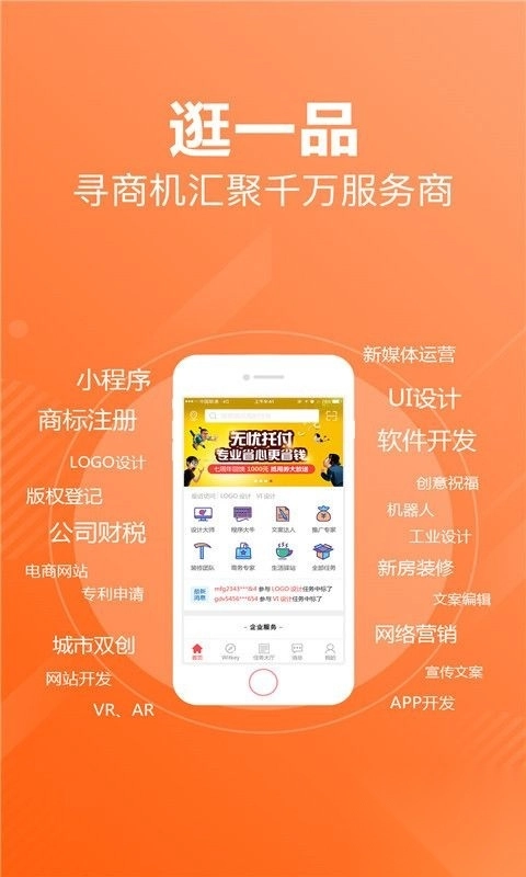 一品接单APP,是一款专门面向自由职业者与企业的在线任务对接平台。平台凭借严谨的订单审核机制,保障每一笔交易真实可信,切实维护合作双方的权益。截至目前,该平台已吸引了超800万家企业以及2000余万自由职业者入驻,所提供的创意服务丰富多元,包含LOGO设计、VI系统设计、品牌全案策划、商业海报制作、产品包装设计、移动应用开发、网站建设、小程序定制、游戏开发、整合营销等多个领域。