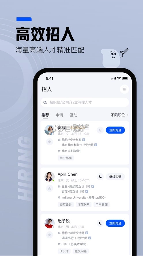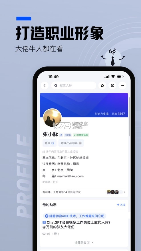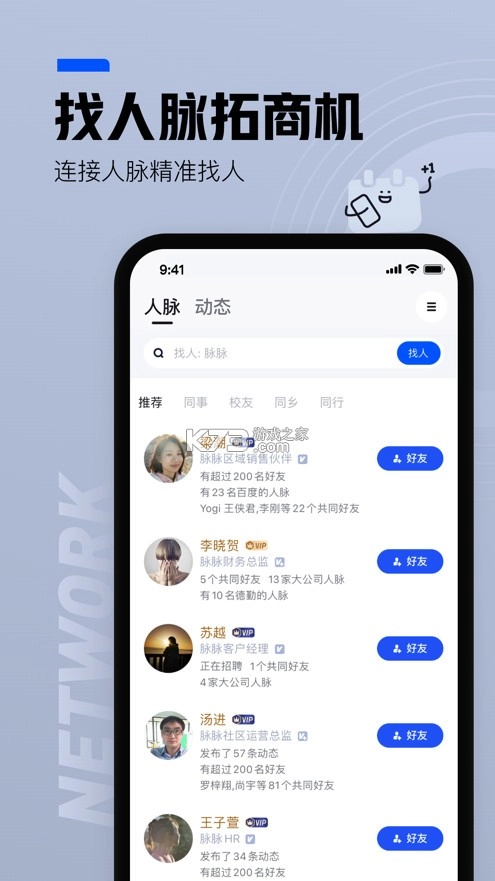 脉脉还提供基于人脉网络引擎的智能推荐和搜索功能,帮助你更高效地拓展人脉。通过脉脉,你可以轻松建立优质的人脉网络,无论是商务洽谈、交流合作还是求职招聘,都将更加轻松高效。