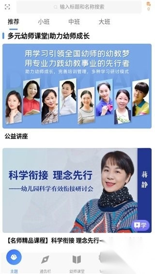 2、进入首页,可查看名师精品课程、公益讲座等丰富学习资源。