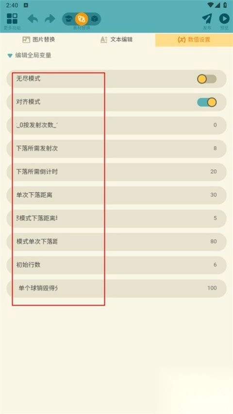 6、可对角色属性、场景参数等各种数值进行个性化设置。