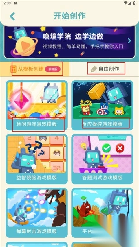 3、接下来可选择模板创作或自由创作,根据需求随意发挥创意。