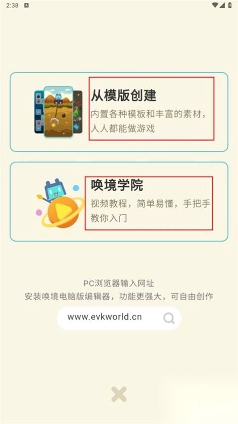 1. 于本站进行唤境编辑器的下载、安装操作,安装完成后打开该编辑器。进入首页后,点击“创作”选项,从而进入创作页面。