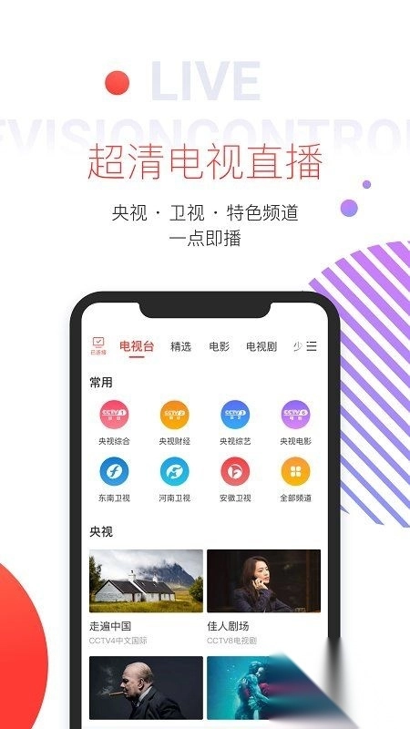 2、高清电视直播:央视、卫视等频道一键播放,便捷观看。