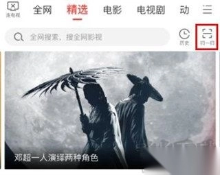 4、采用扫码连接方式:开启电视端的多屏互动二维码,于手机端 “影视 - 精选” 页面点击 “扫一扫” 进行扫描连接。