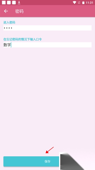 3、输入四位密码,若担心忘记密码,还能设置类似提示的口令,之后保存密码。