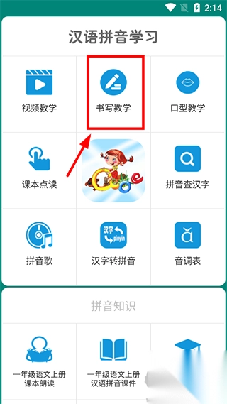 1、登录汉语拼音学习app,点击【书写教学】