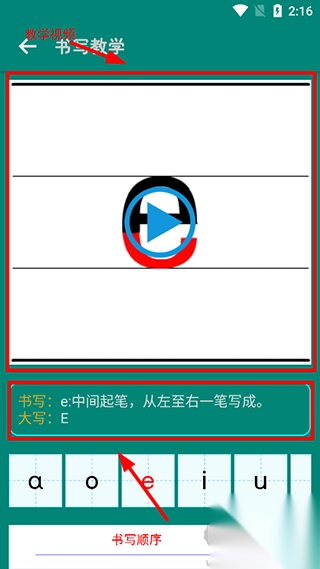 2、【书写教学】页面如下