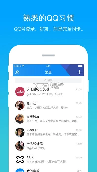 联系人:使用QQ登录后,联系人自动全部同步,部分不常用联系人还能选择隐藏。