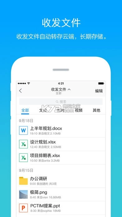 云文件:提供10G免费云存储空间,可长期存储聊天时收发的文件,并方便进行文件管理。