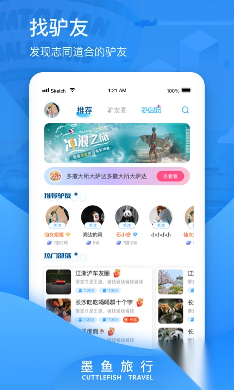 5、首页增加小墨鱼ai推荐好友和推荐队长功能,基于用户兴趣与需求,精准推荐,增强社交属性。
