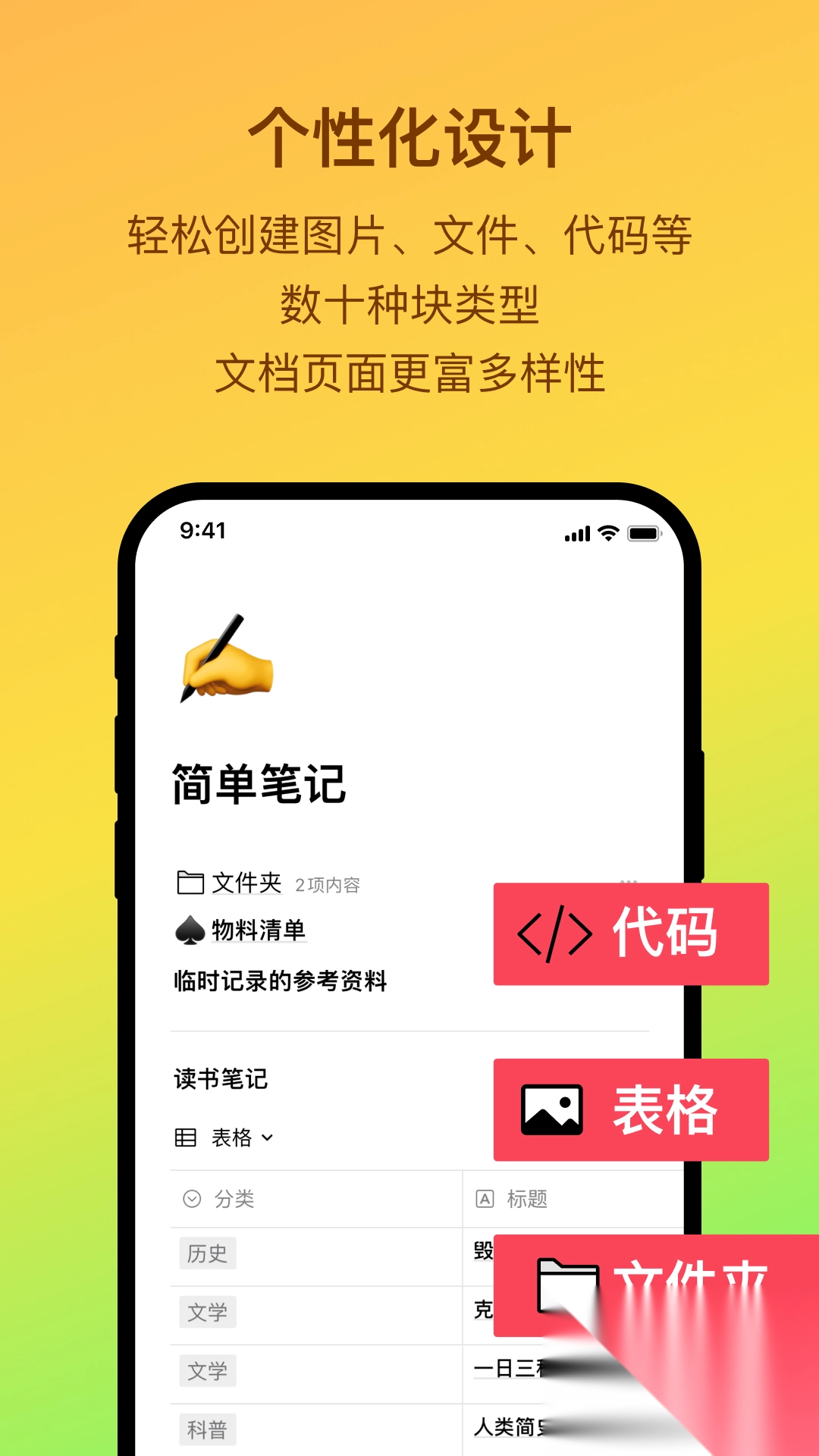 摆脱碎片化管理模式,只需一键,即可插入文字、表格、代码、音视频以及网页内容,同时还支持嵌入第三方服务,全方位满足多场景下的创作需求。