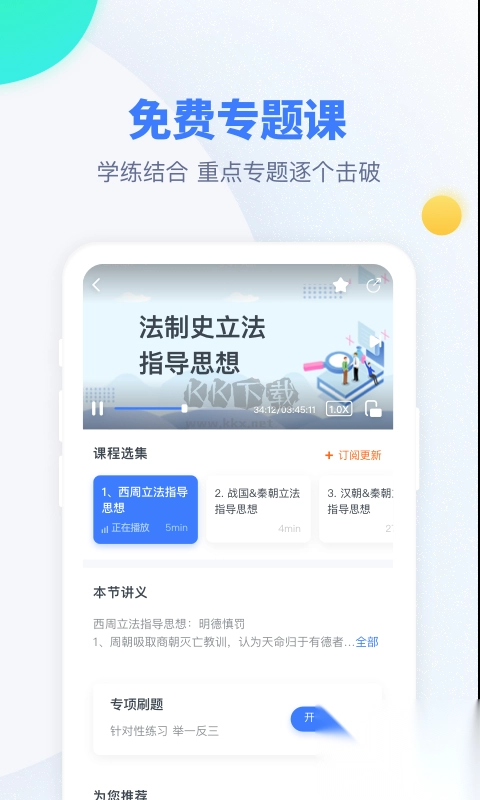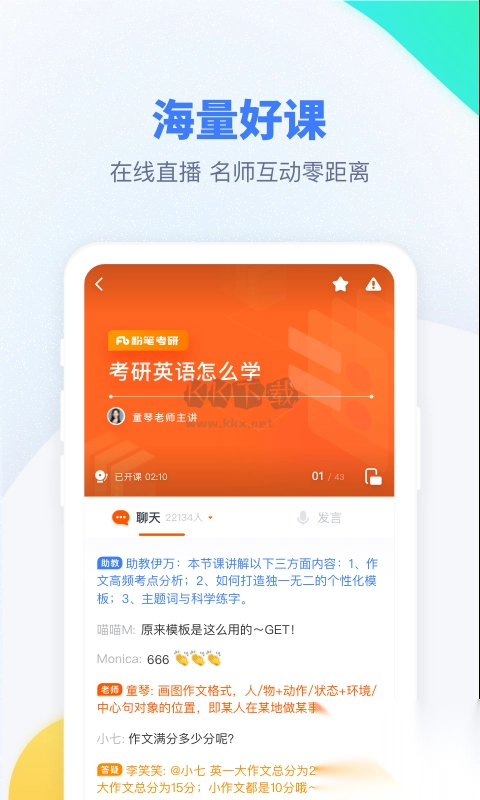 3.在线直播,跟随老师直播学习,实时互动,助教实时跟进划重点,高效获取复习重点;在线观看高品质音质保证良好上课体验,观看消耗流量小。