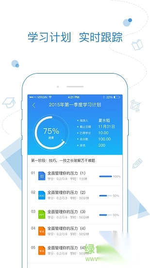 随时随地创建学习计划,迅速分配学习任务;实时跟踪学习进度,在线学习不再漫无目的。