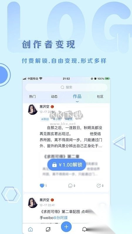 3、以创作为核心的多元化社交平台,在这里你可以找到来自五湖四海各个领域的伙伴。