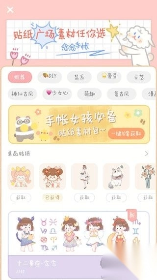 4、【沉浸体验】自带特色念念角色,丰富贴纸和原创手帐封面,还原真实手帐乐趣。