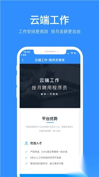 3、云端按岗位组建团队:精选客栈靠谱优质开发者,长期合作,服务时间更充裕可控。精简线下团队,保持公司竞争力,更高持续性