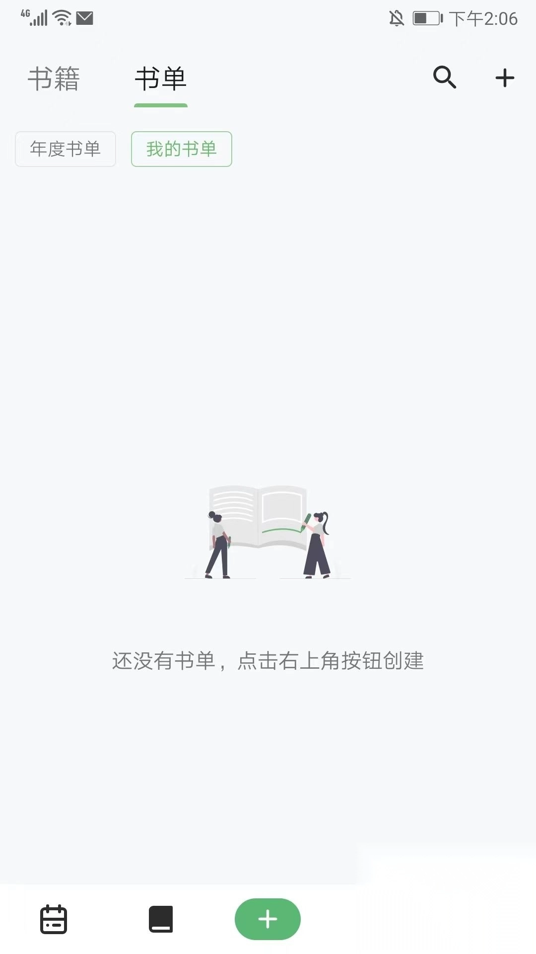 2、在书籍书单界面,我们可以创建和搜索自己的书籍和书单,