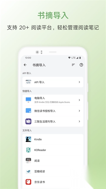 不仅支持导入Kindle阅读笔记,还能够把书摘内容导出到其他平台,达成多设备数据同步。