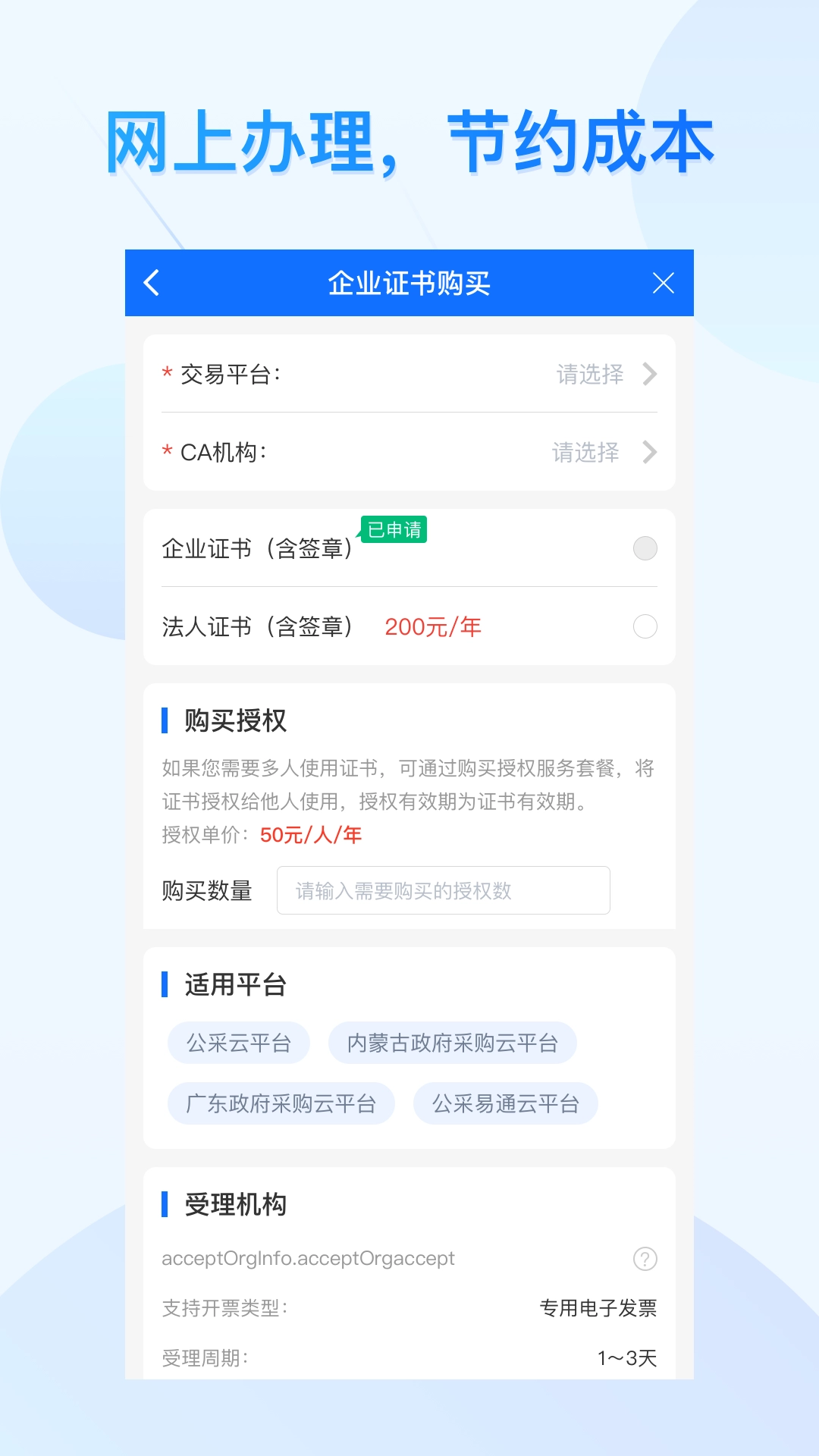 网上办理,节约成本