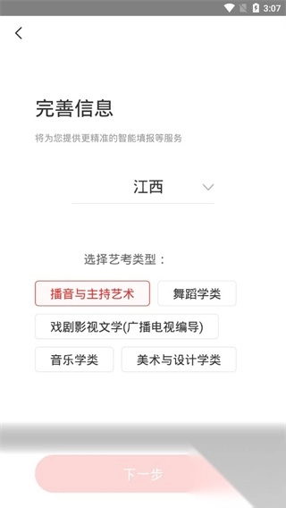 1、首先我们进入优艺考app,登录之后我们先完善一下信息,最好真实提供因为将会按照你的信息进行推荐;
