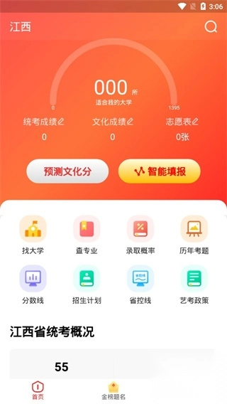 2、进入软件之后我们可以先预测一下文化分,然后看看适合自己的大学;