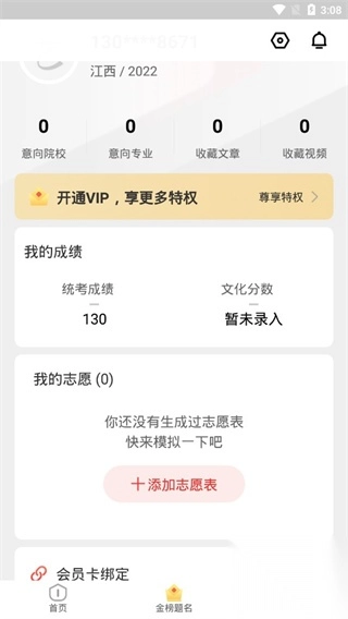 6、最后在我的里面我们可以看到模拟志愿表,并且还可以看到自己意向院校和专业;