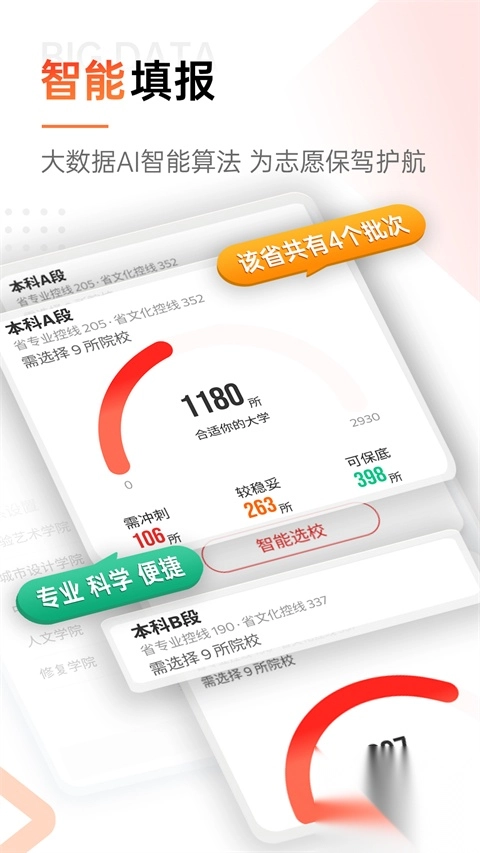 全面适配全国30个省份高考报考规则,根据艺考生独特的多批次填报方式,多维度快速匹配适合志愿;