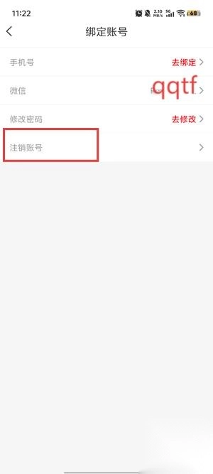 在账号绑定界面点击注销账号,根据提示完成注销。