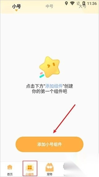 1、打开软件后,点击小组件,再点击添加小号组件。