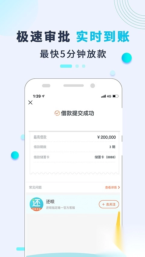 2、极速审批,获得额度,快至10分钟审核。
