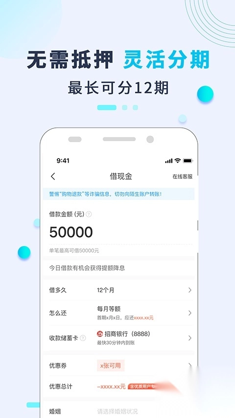 4、更便捷:手机贷款全程线上申请,免抵押