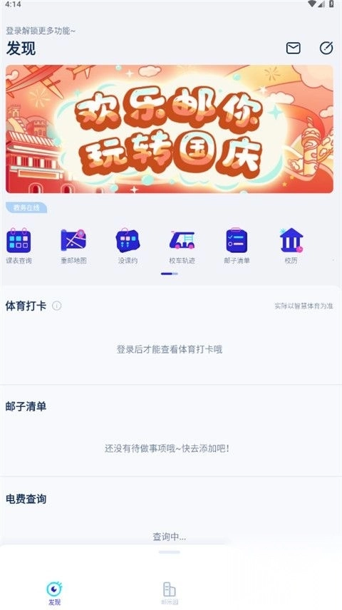1、新增体育打卡功能,空教室功能,方便邮子们的校园生活