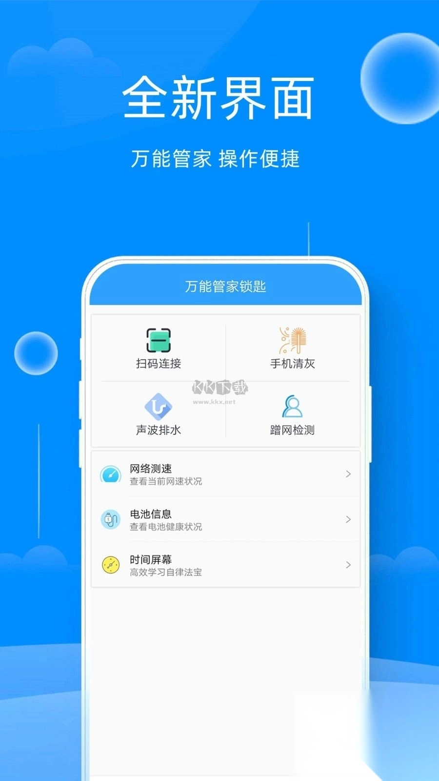 2024手机版万能管家钥匙是一款功能多样的实用软件。它能实时防护手机免受各类病毒侵扰,时刻守护你的手机安全;还支持检测手机的各项性能,助你更深入了解手机使用情况;同时,它可在你上网过程中提供保护,对各类网络展开安全监测。