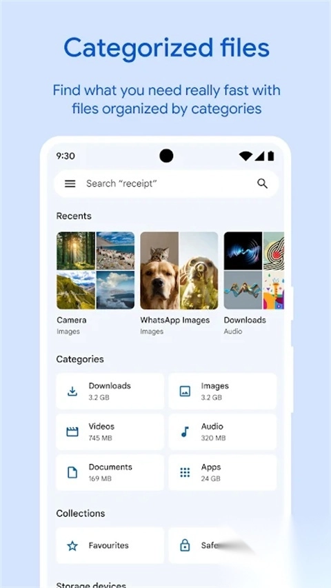 9、查找文件更迅速,无需再在错综复杂如迷宫般的文件夹中逐一浏览。我们的智能过滤器会自动梳理您的图片、视频、应用、文档等各类内容,借助它,您能够精准定位到所需内容。