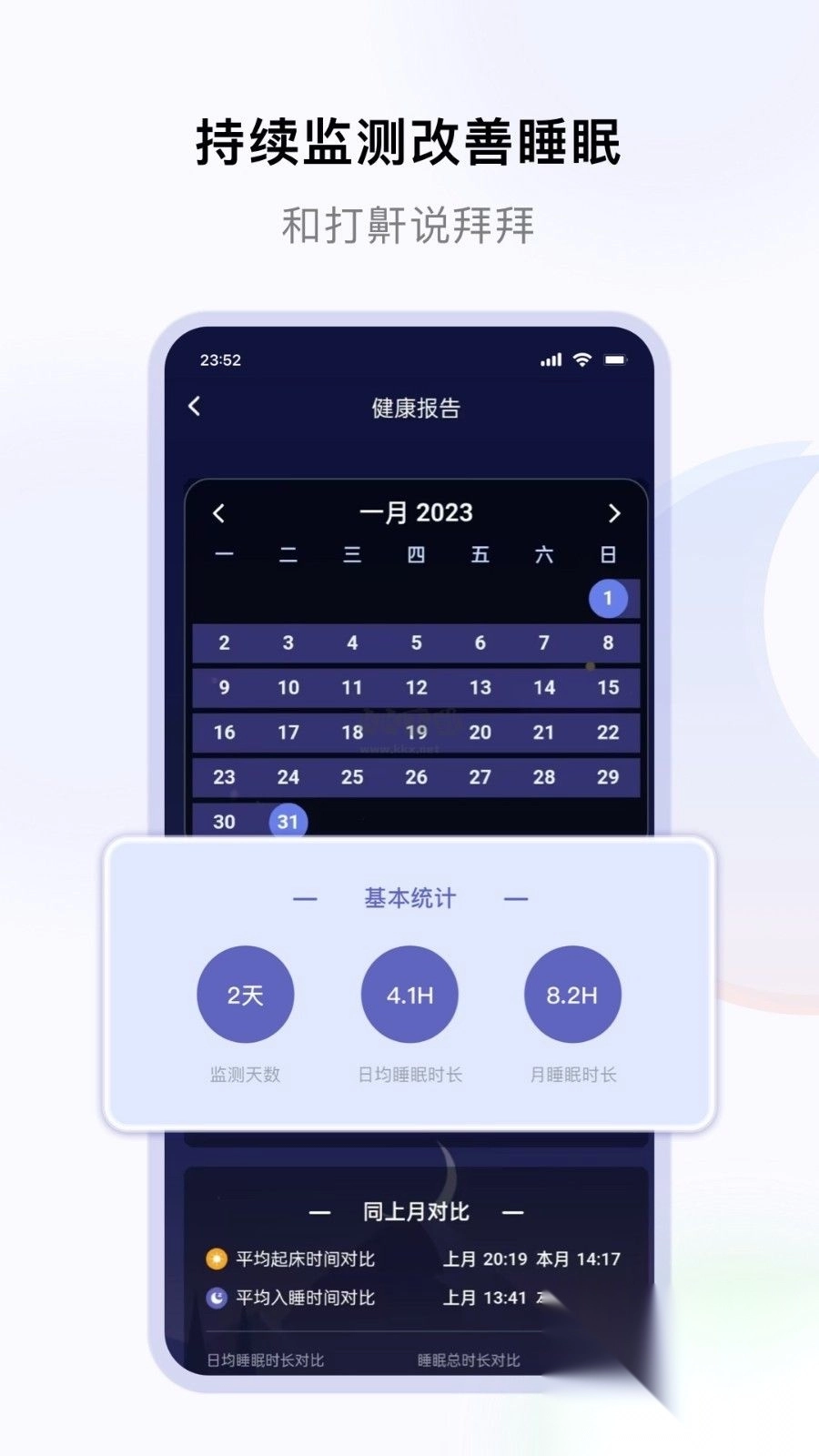 ·完整的日、周、月数据报表,让你更一目了然自己的睡眠情况