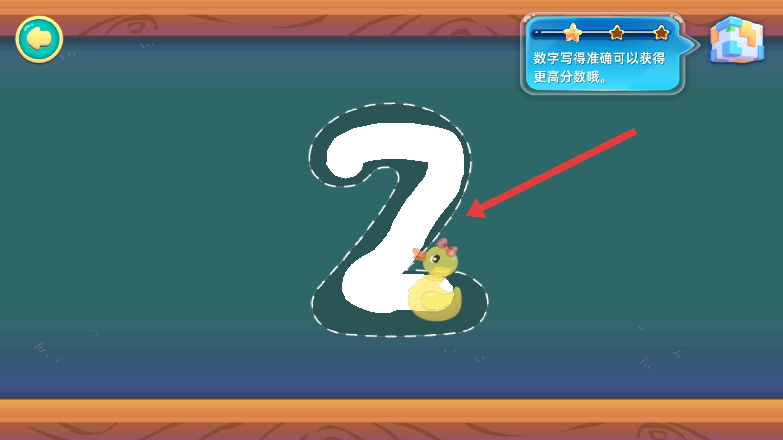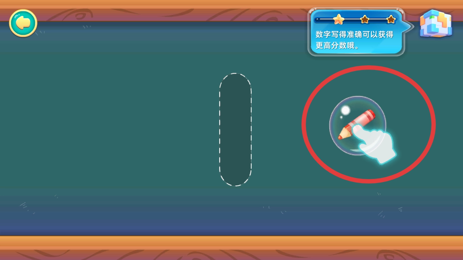 3、跟随引导,点击红色圆圈内的铅笔图标,准备进行数字书写。