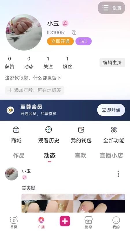 5、于个人中心,可查看关注、点赞、动态、作品、钱包等相关信息,且能一键开通会员。