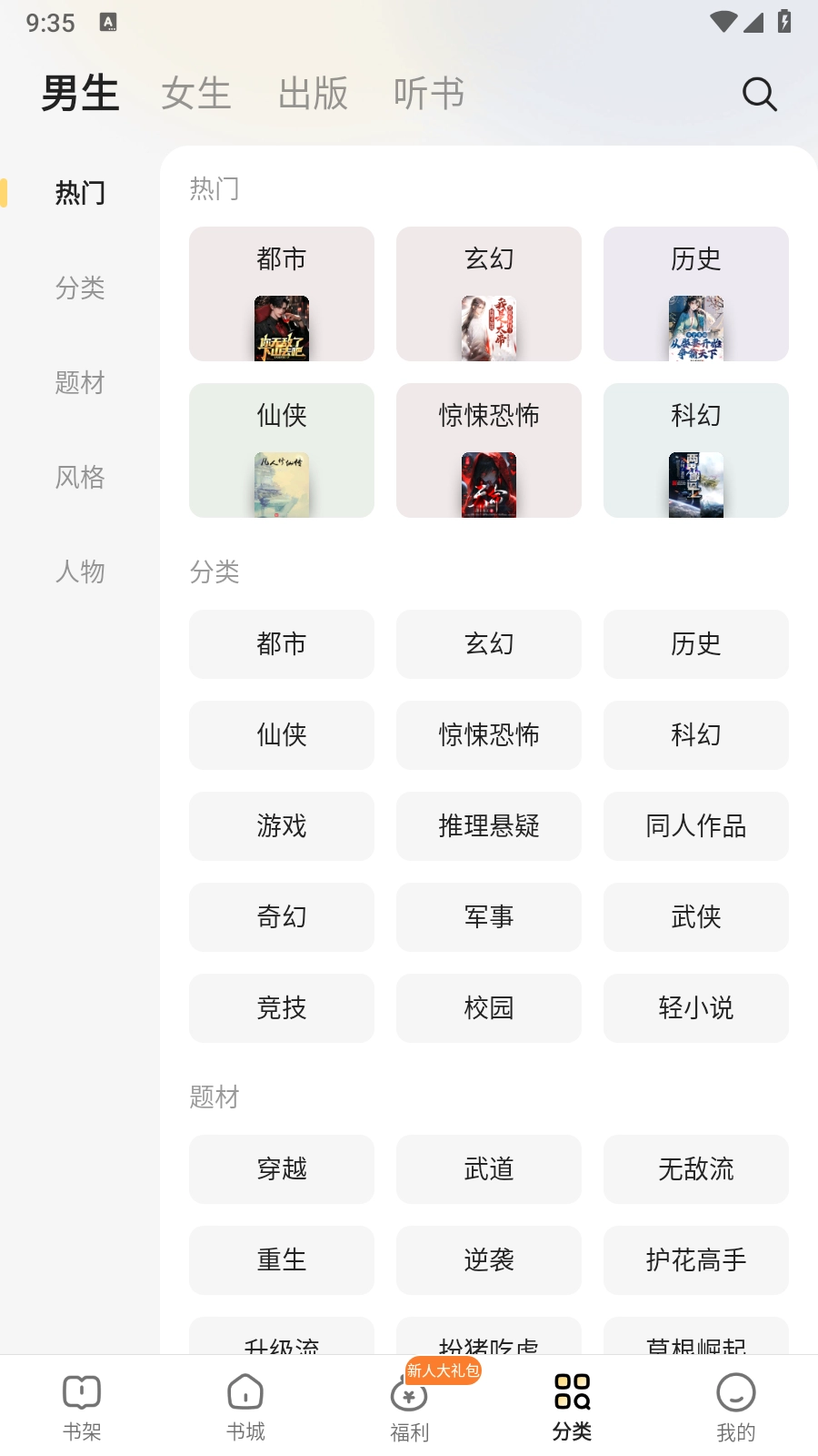 1. 点开得间免费小说App,进入应用后,依据自身喜好挑选男生或女生类型,就此开启阅读之旅。