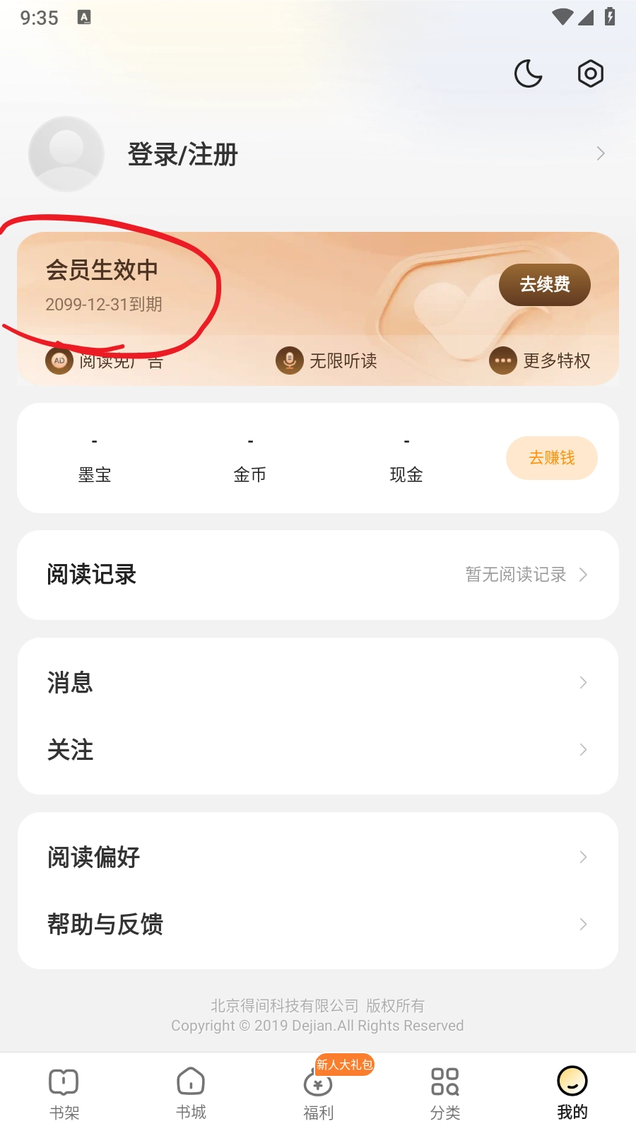 得间免费小说使用说明:已解锁会员,无需登录即可使用
