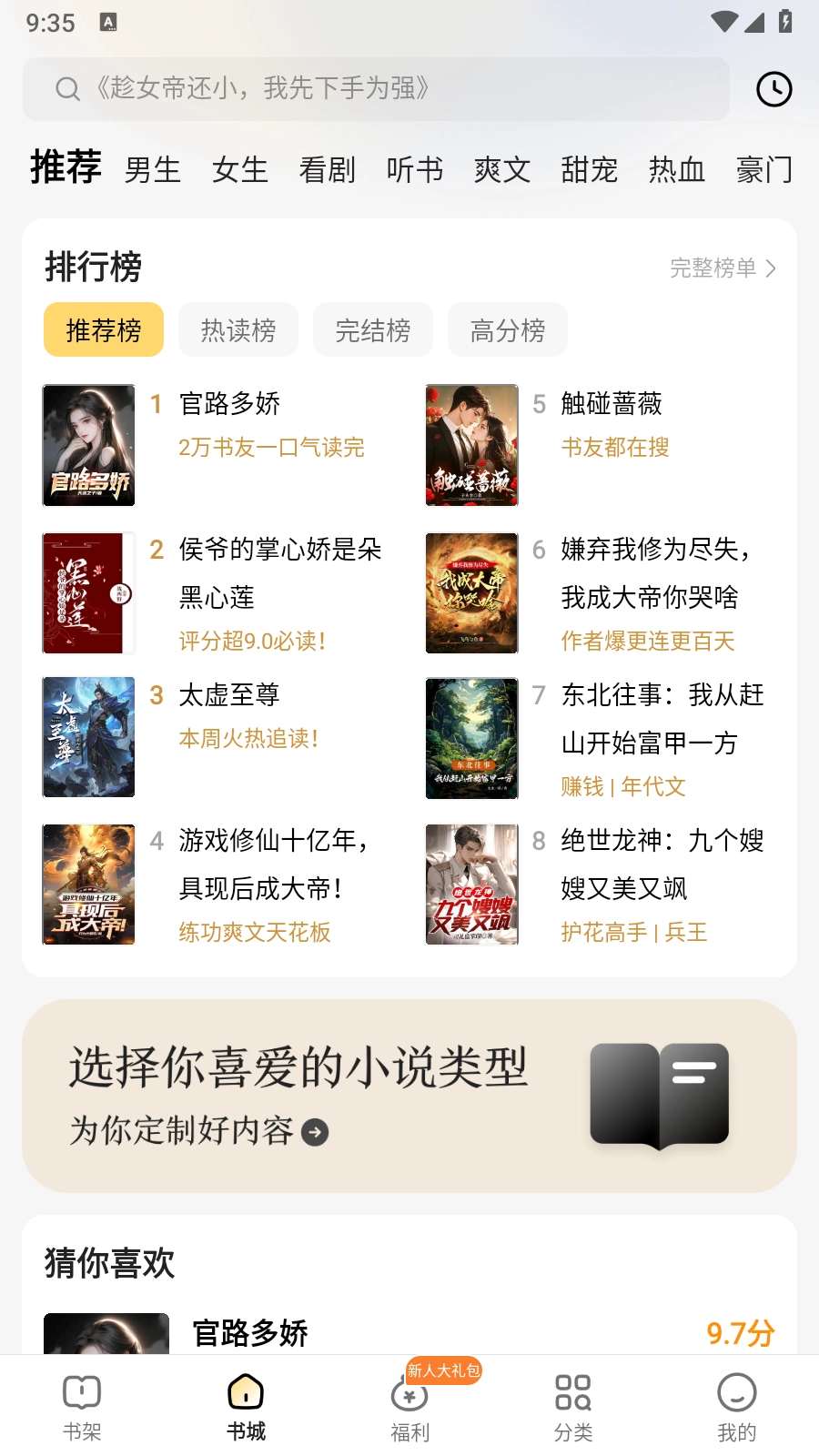 2. 踏入首页,便能瞧见全网最热门小说、必追精品小说以及热门佳作等各类小说。