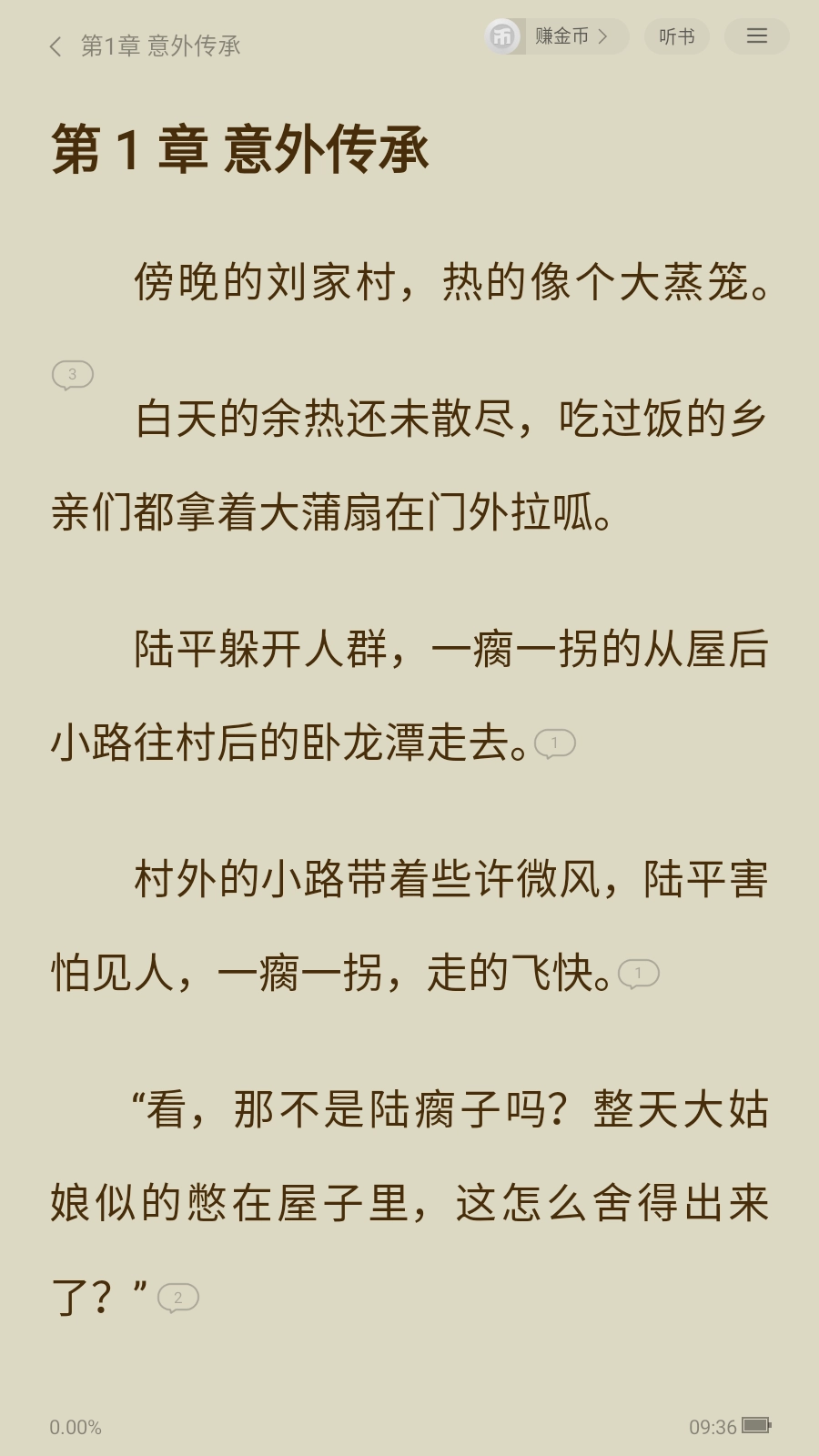 1. 开启得间免费小说这款软件,待进入应用界面后,寻觅自己喜爱的小说,进而开启听书模式。