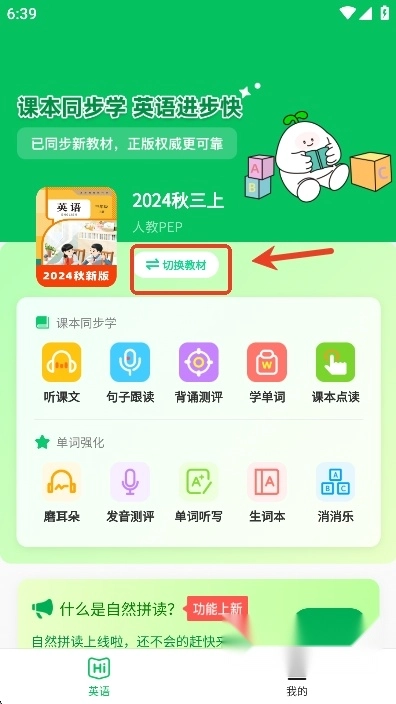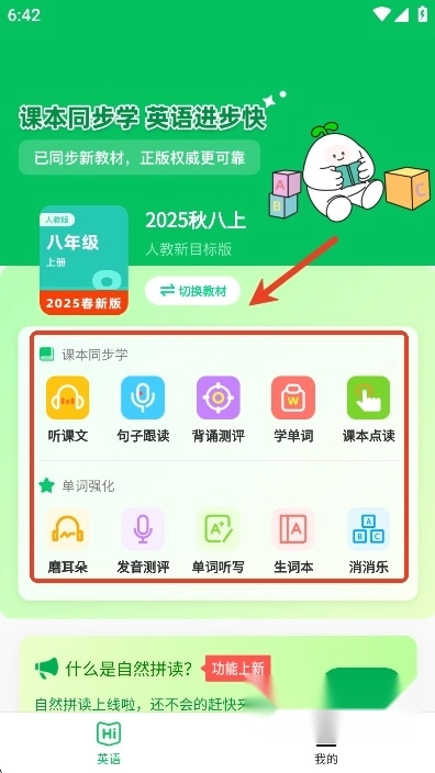 然后学生们就可以使用软件的朗读功能,通过跟着读来练习发音