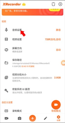 1. 于本站下载、安装并打开XRecorder一键录屏,接着点击右下角的设置选项