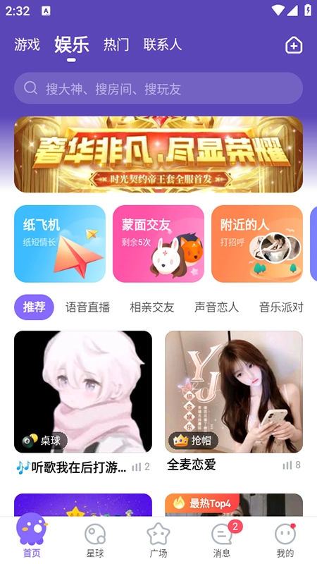 3、提供语音直播、娱乐语音房间、蒙面交友等多种语音互动形式,丰富用户的社交和娱乐体验。